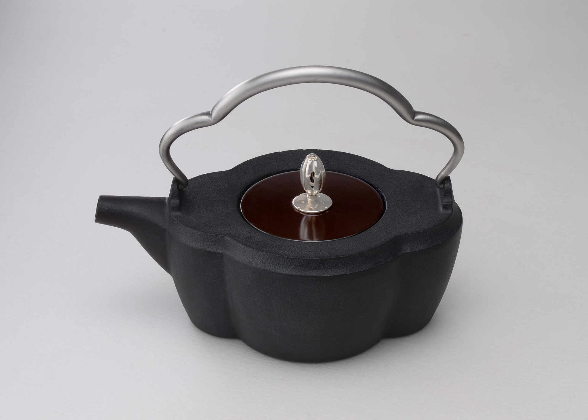 HS-62/04/Iron Kettle/ Motukougata/copper lid, silver tab &stainless-steel handle