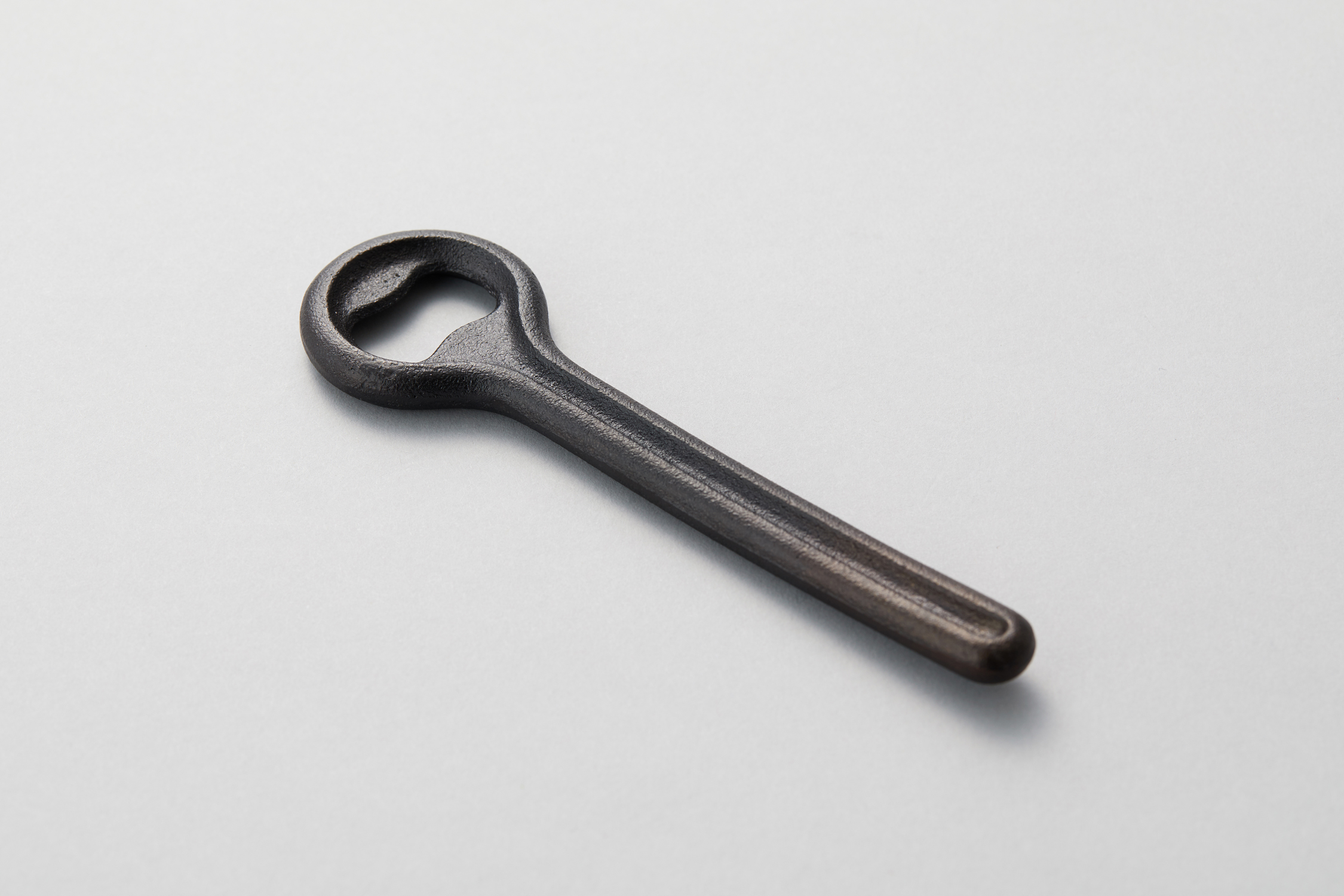 金属の丸棒を曲げるイメージでデザインされた鋳鉄製の栓抜きです。ビール瓶の栓をセンヌキでスポンと抜く感じは爽快です。使い終えたらそのままテーブルに置いても壁に掛けてもキッチンのアクセサリーになります。