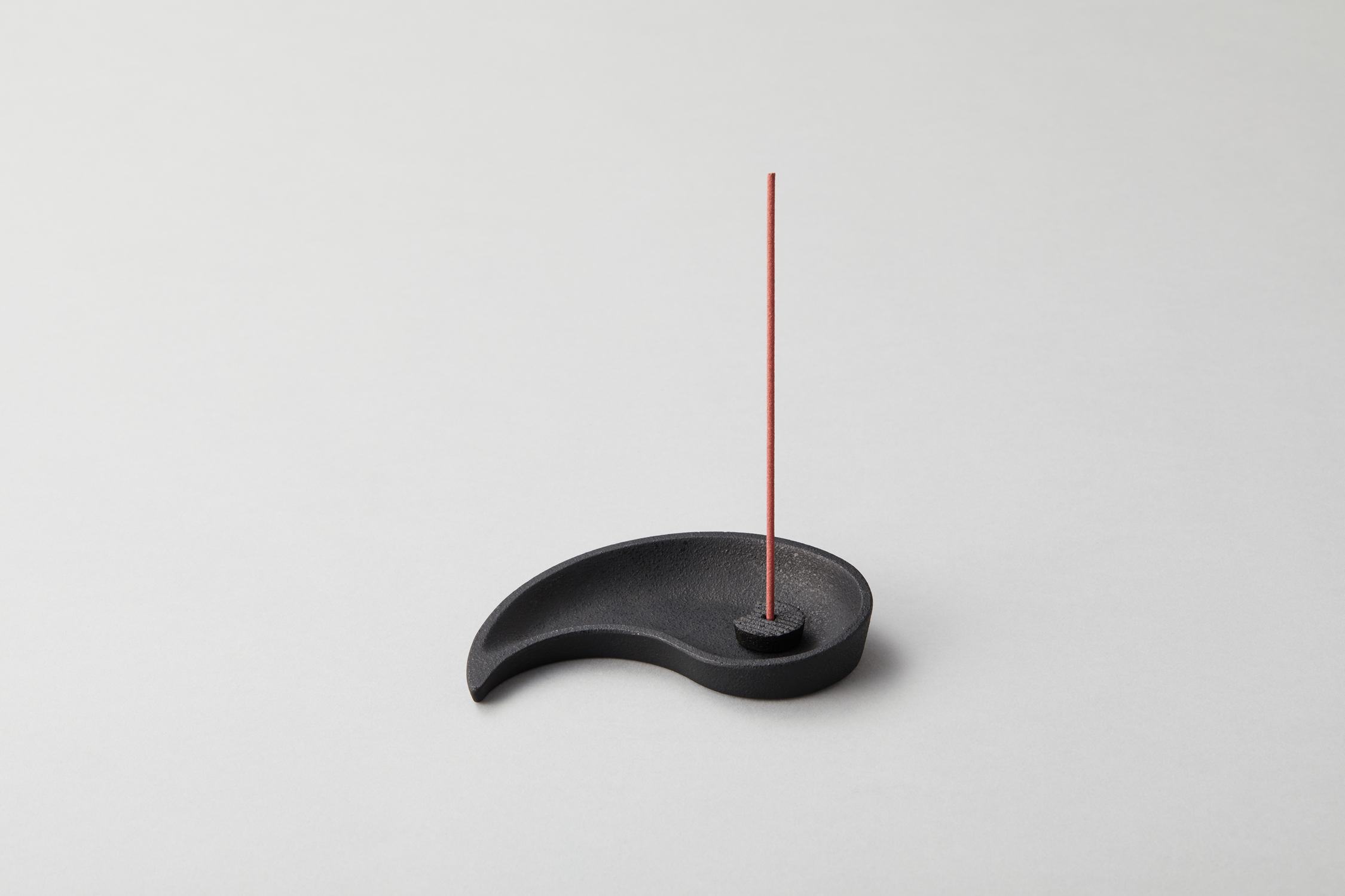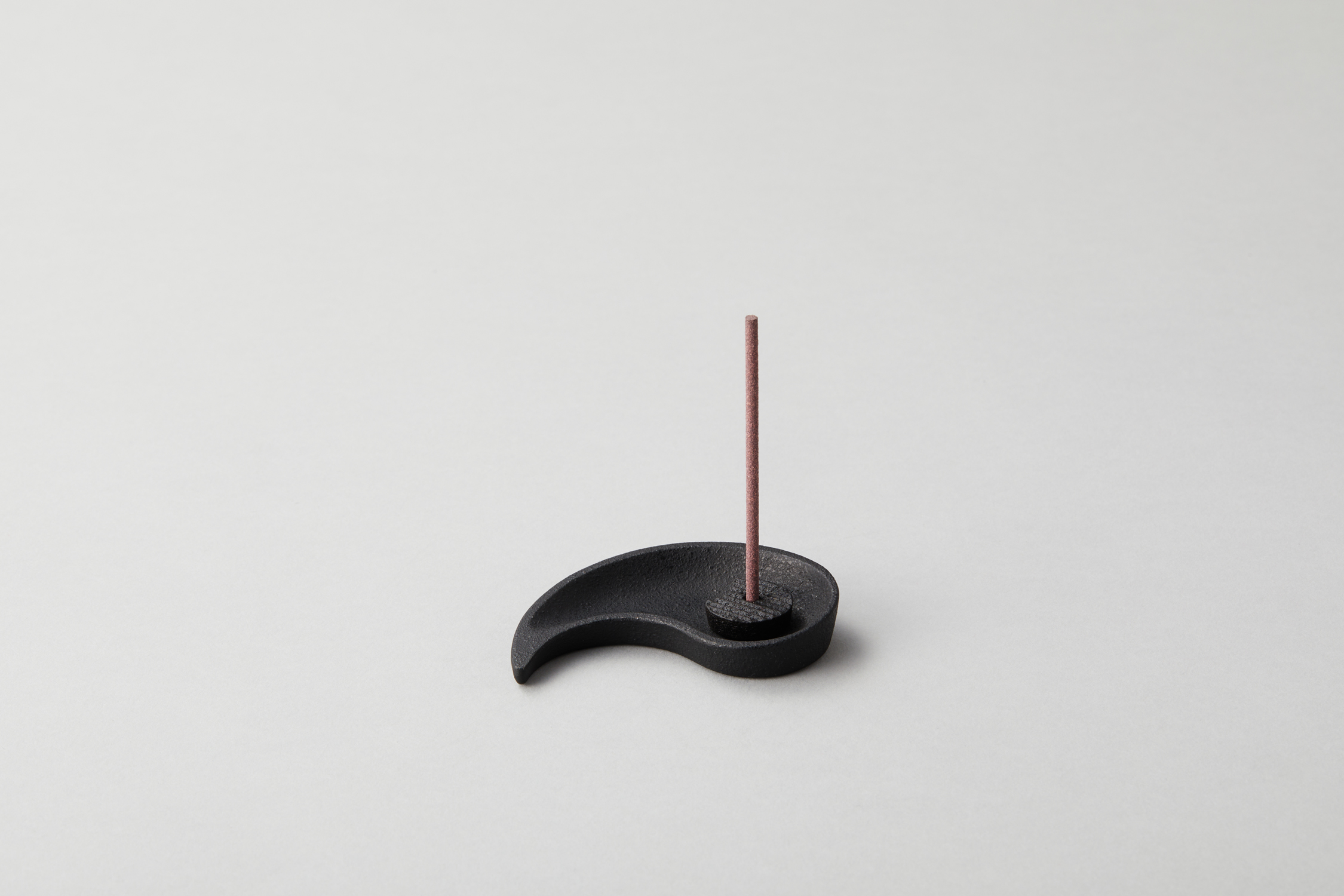鋳鉄でつくられた香立です。紙を二つに折った形のデザインの本体と長方形の香立てには3つのサイズの異なる穴が開いています。2,6mm,3,2mm,3,8mmの穴は太さの異なる様々なお香に対応できます。瞑想の時間にぴったりの香立です。