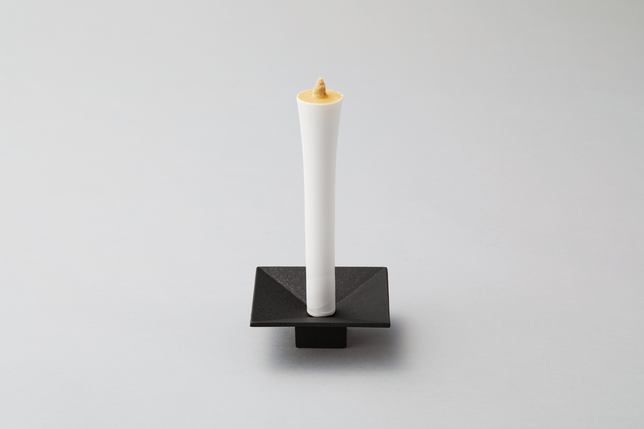 This candle stand for Japanese candles is designed based on the motif of a square piece of paper folded in half.