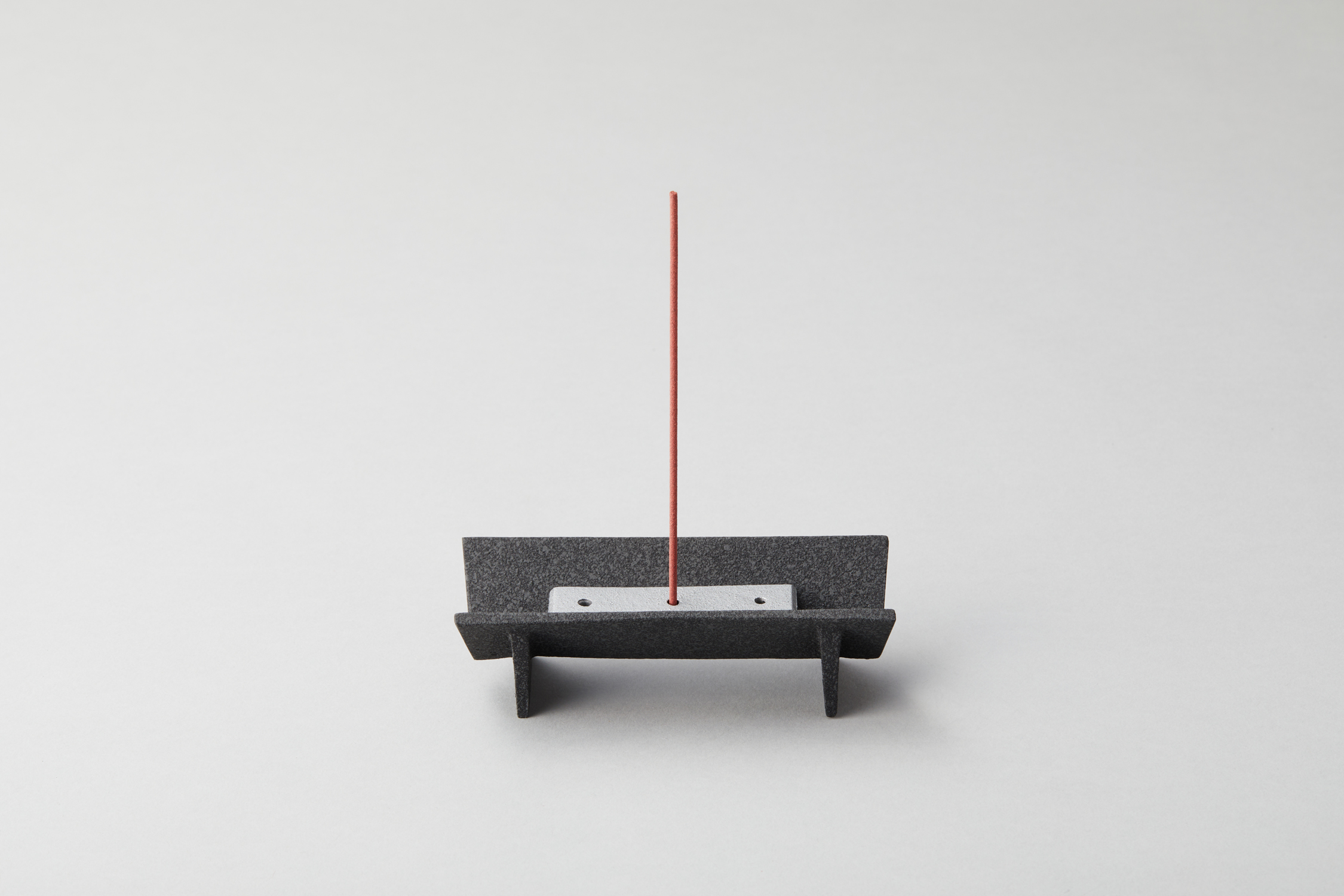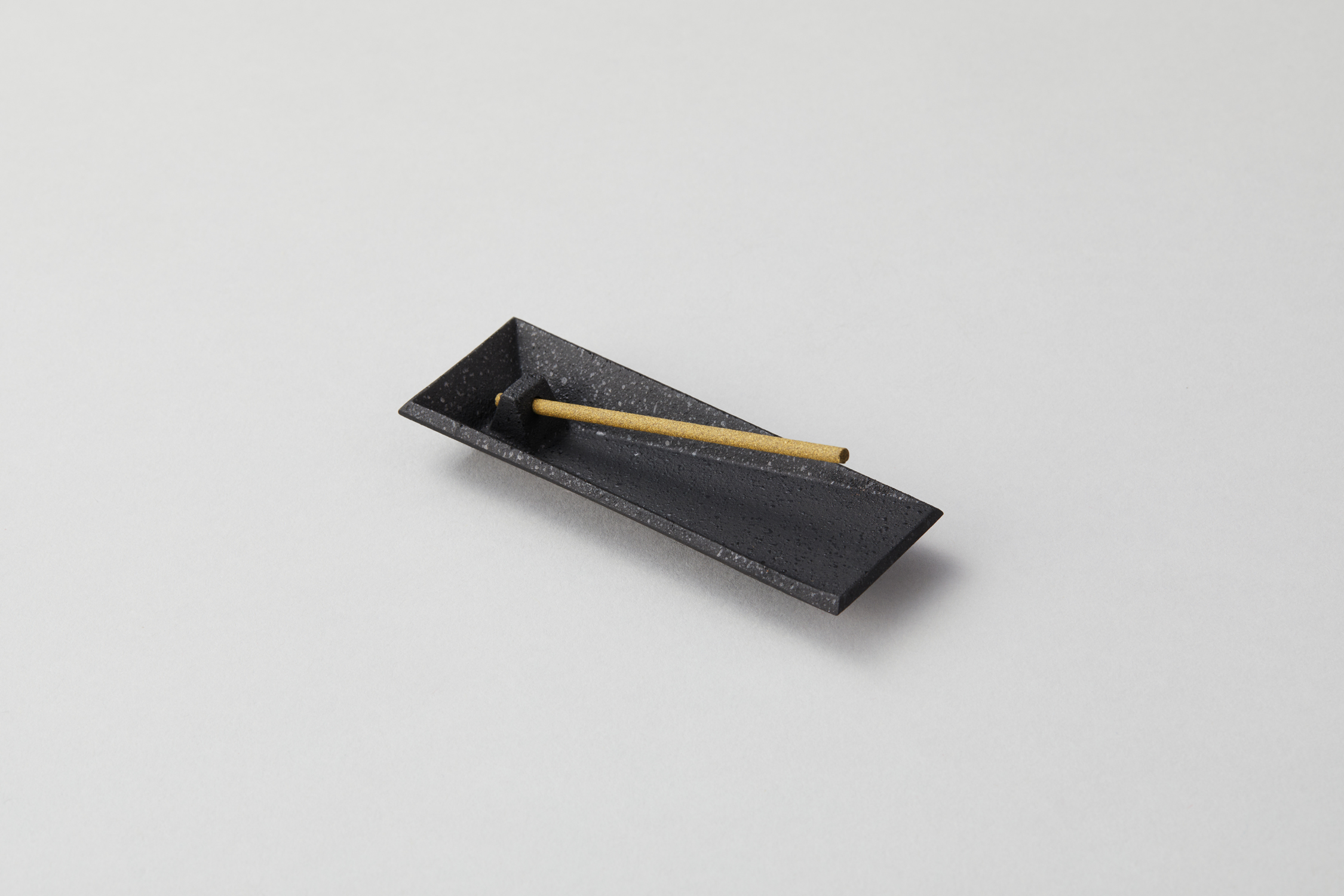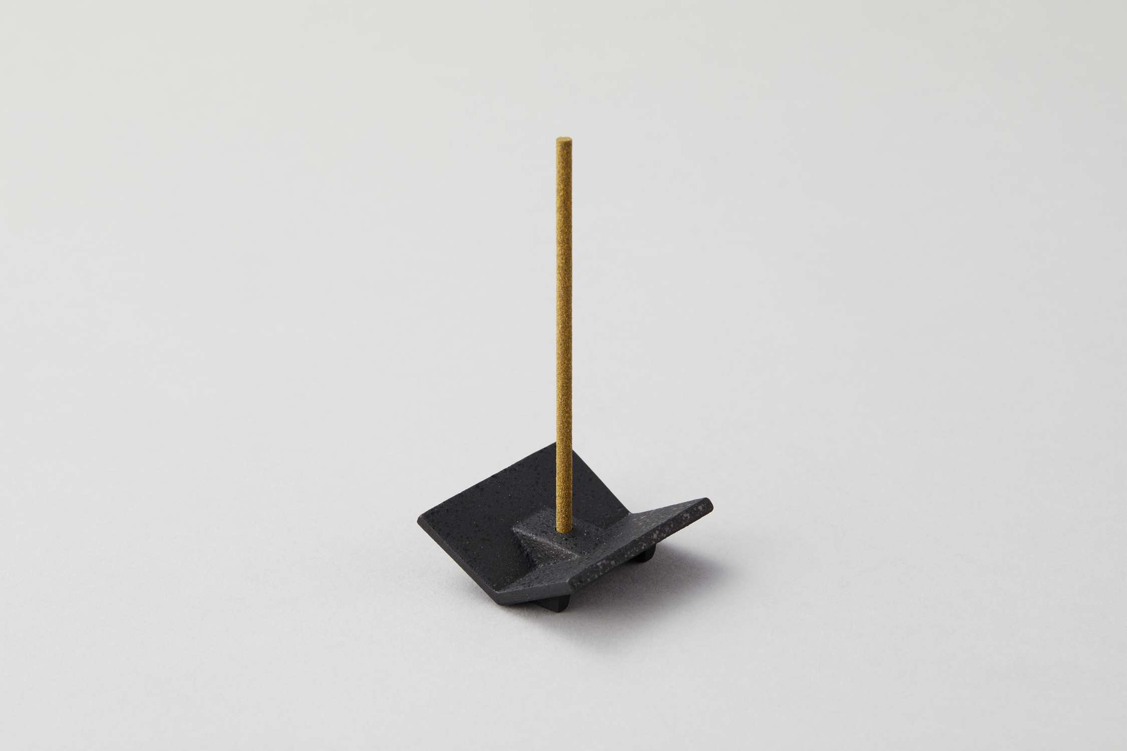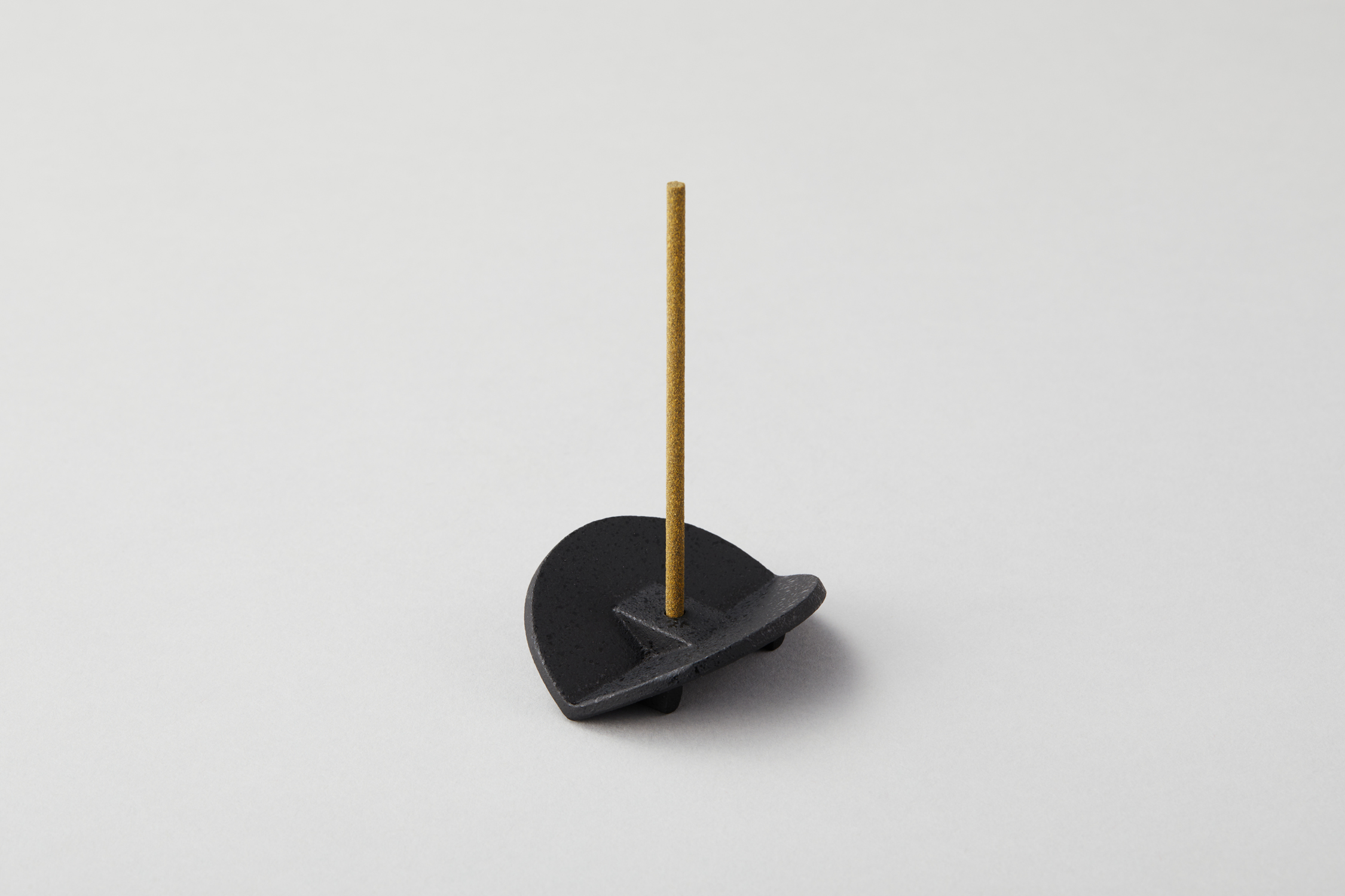 This incense holder is made of cast iron. Its design is inspired by the shape of a piece of paper folded in half. The rectangular holder has three different hole sizes, 2.6mm, 3.2mm, and 3.8mm, allowing you to insert incense of various strengths. This incense holder is perfect for meditation. It’s crafted in Japan.