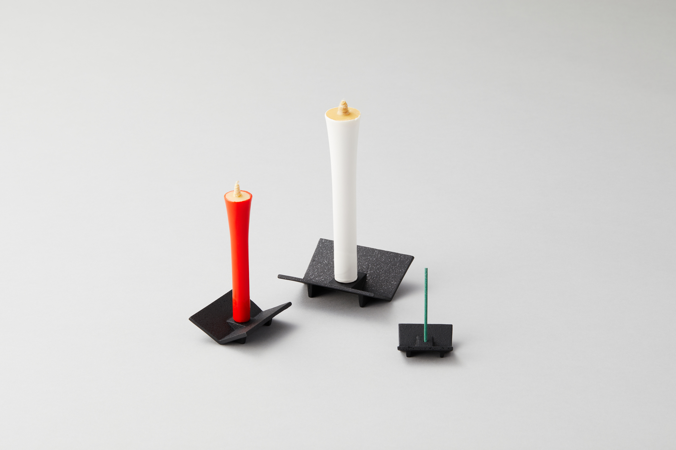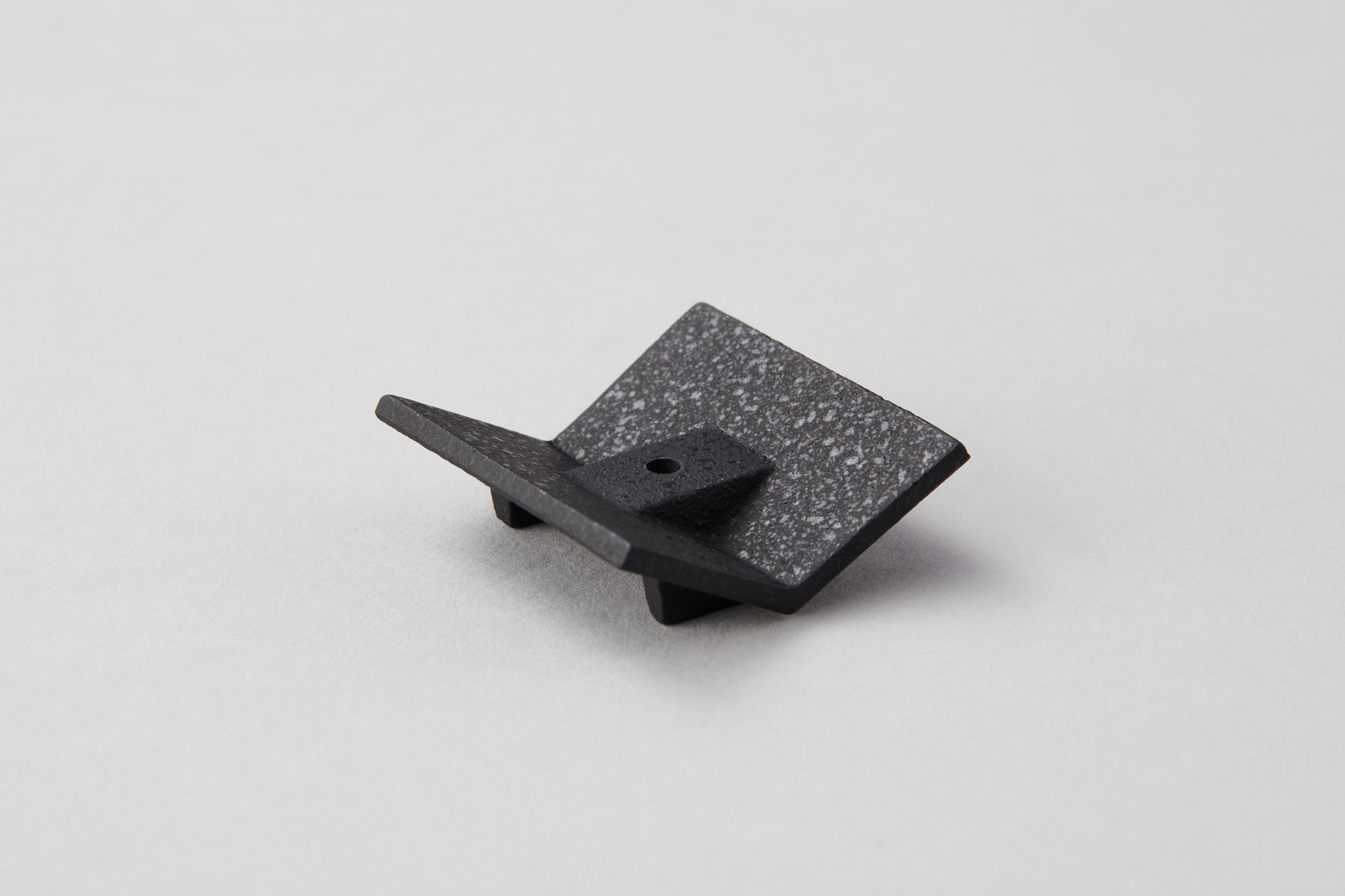香立・角折Incense holder品番:MA-61品名:香立・角折色:黒(アクリル焼付仕上げ)寸法:40x38x13mm材質:鋳鉄重量:40g価格:2,000円(税抜き)MA-61/Incense stand/Kakuori