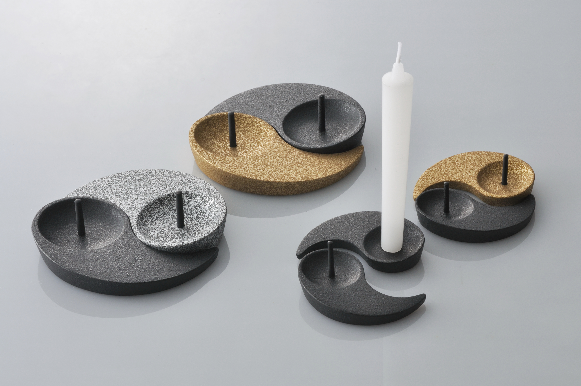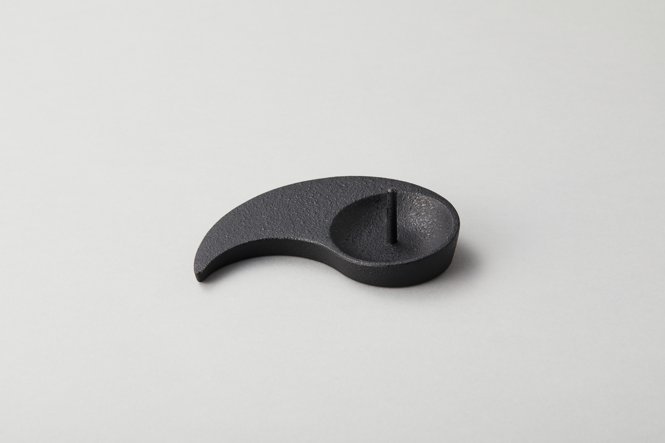 品番:HS-43M品名:しょく台・巴・M色:黒・金・銀(アクリル焼付仕上げ)寸法:115x90x35mm材質:鋳鉄重量:420g価格:3,500円(税抜き)HS-43M/Candle holder/Tomoe/M (for Japanese candles)
