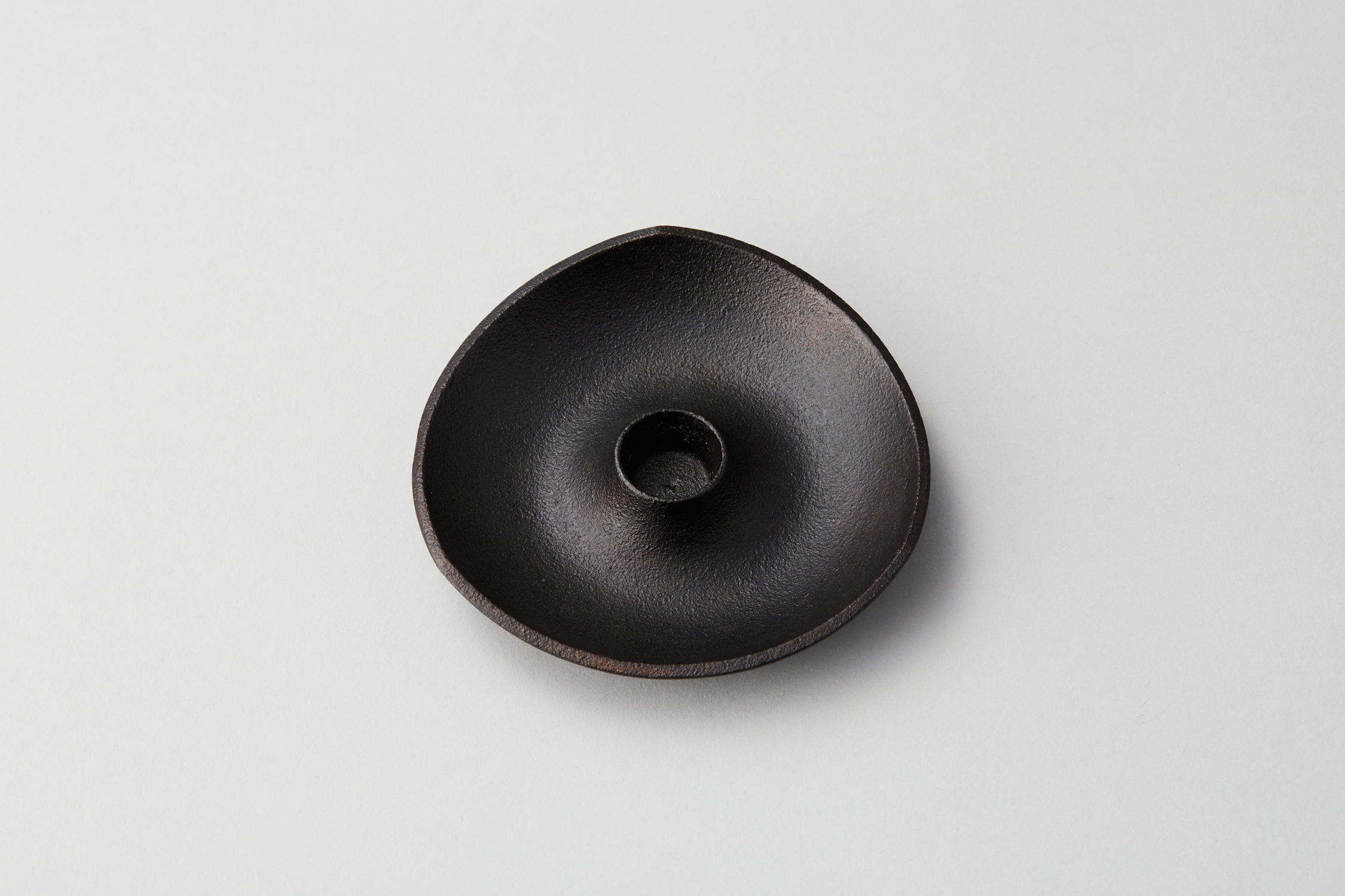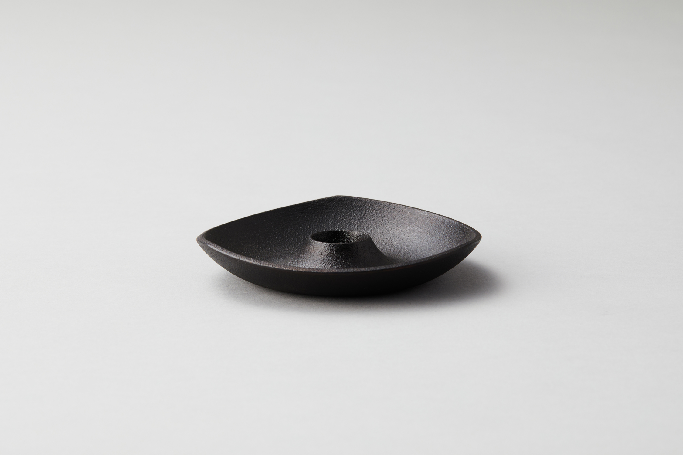 キャンドルスタンド・三方品番:HS-45品名:キャンドルスタンド・三方色:黒(本漆焼付仕上げ)寸法:110x100x20mm材質:鋳鉄重量:300g価格:3,500円(税抜き)HS-45/Candle holder/Sampou
